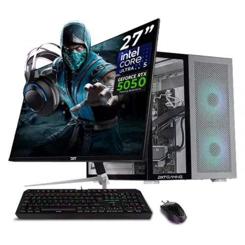 Computadora Gamer Dxt Gaming CM-01042, Intel Core Ultra 5 225F, NVIDIA GeForce RTX 5050, 32GB, 1TB SSD, Wi-Fi, Windows 11 Prueba + Teclado/Mouse/Monitor de 27"