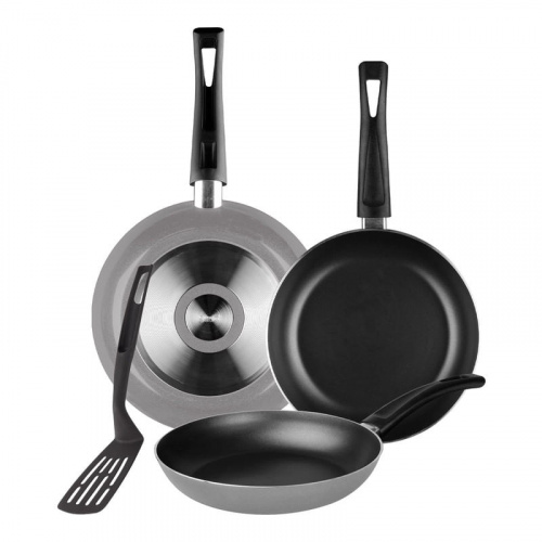 Ekco Juego de Sartenes Select, 3 Piezas, Antiadherente, Aluminio, Negro/Gris