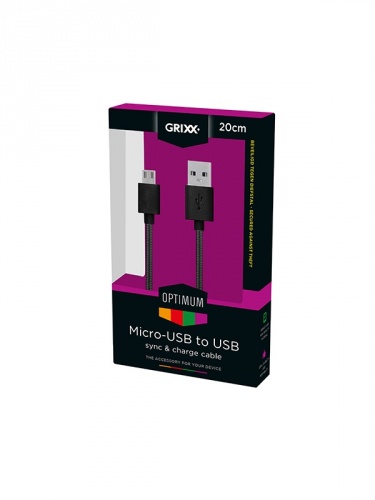 Grixx Cable USB Macho - Micro USB Macho, 20cm, Negro