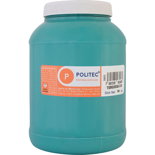 Politec Pintura Acrílica Mate para Arte Línea 300, 1000ml, Turquesa, No. 324