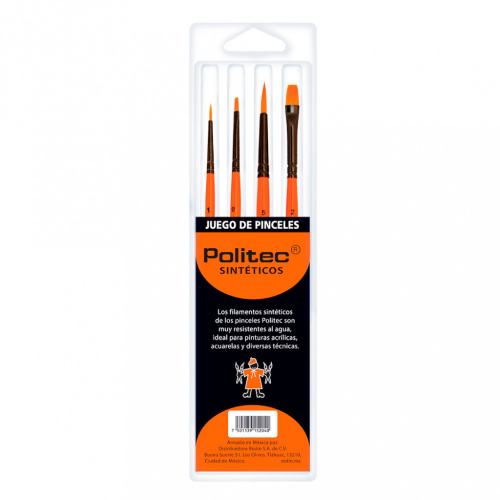 Politec Set de Pinceles, Pelo Taklón Dorado, 4 Piezas, para Acrílico y Óleo