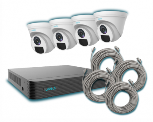 Uniarch Kit de Vigilancia NVR-104E2-P4-KIT3 de 4 Cámaras IP Domo y 4 Canales, con Grabadora y Cables