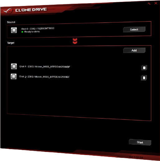 ROG Clone Drive es una solución inteligente que replica tus discos duros o SSD de un modo rápido y eficiente. Clone Drive también permite clonar una unidad en dos destinos simultáneamente y crear imágenes de discos a una velocidad de vértigo.