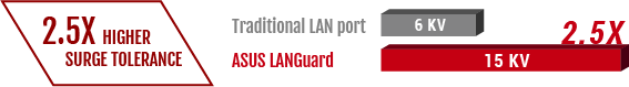 REDUCE LA CARGA DE LA CPULANGuard te proporciona unas conexiones más seguras y fiables para tus batallas. La avanzada tecnología de acoplamiento de señal y los componentes montados en superficie aumentan el rendimiento y la fiabilidad de las conexiones LAN. Asimismo, los componentes con protección electrostática y resistentes a subidas de tensión (ESD Guards) ofrecen una tolerancia contra electricidad estática 1,9 veces superior y resisten subidas de tensión de hasta 15 kV.
