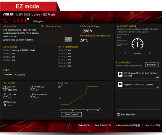 La interfaz BIOS más elegante, fácil e intuitiva ha sido renovada con funciones que todavía la hacen más atractiva tanto para novatos como para overclockers experimentados. El Modo EZ ofrece una configuración simple, permite cambiar la fecha, hora y los perfiles de los ventiladores y la memoria XMP. Pasa al Modo avanzado para configurar favoritos y accesos directos, salvar y consultar las modificaciones recientes y crear anotaciones con Quick Notes.