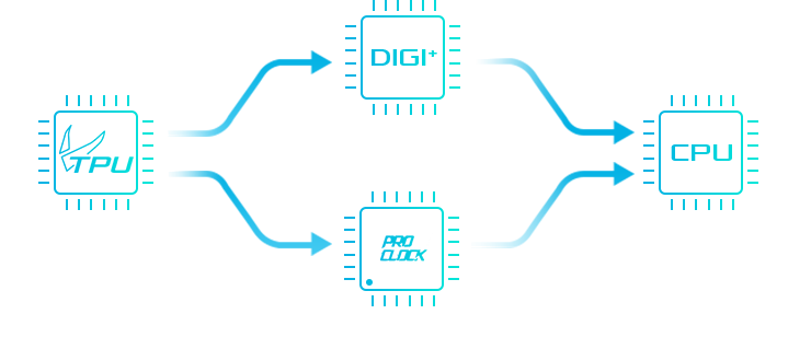 La Prime Z370-A incluye un generador de reloj base (BCLK) que permite acelerar la frecuencia de reloj base del procesador. Esta solución trabaja junto a ASUS TurboV Processing Unit (TPU) para mejorar el control del voltaje y el reloj base y que lleves el rendimiento de la 8ª gen. de procesadores Intel a cotas extremas.