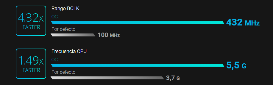 *El rango de OC BCLK varía según la CPU, la refrigeración, el soporte y las opciones de ajuste de la tarjeta madre.