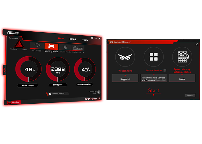 La utilidad ASUS GPU Tweak II lleva la optimización del rendimiento de la tarjeta de video al siguiente nivel. Te permite ajustar parámetros críticos, incluidos los relojes centrales de la GPU, la frecuencia de la memoria, la configuración de voltaje y más, con la opción de monitorear todo en tiempo real a través de una visualización en pantalla personalizable. Desde el ajuste de rendimiento hasta el control avanzado del ventilador, GPU Tweak II tiene todas las herramientas que necesitas para sacarle el máximo rendimiento a tu tarjeta de video.