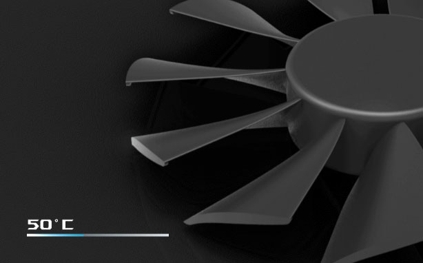 La tecnología 0dB permite a los ventiladores dejar de girar cuando la temperatura del núcleo de la GPU permanece por debajo de 55° Celsius, lo que le permite disfrutar de juegos sencillos en completo silencio. Si las temperaturas aumentan, los ventiladores se vuelven a encender automáticamente.