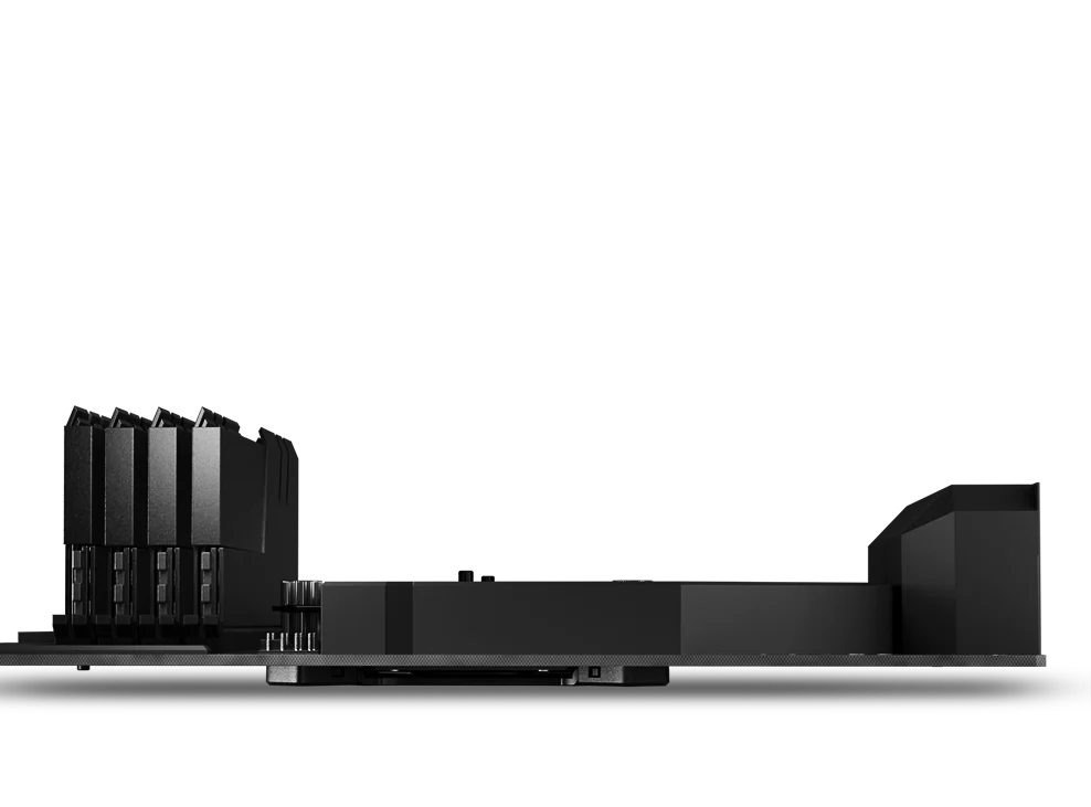 El diseño del tubo de calor en ángulo proporciona un acceso fácil a las ranuras DIMM que ofrece una mejor compatibilidad con difusores de calor altos y también muestra cualquier iluminación RGB. Para placas base de canales cuádruples, las ranuras de la pasrte posterior tienen un espacio libre de 45 mm.